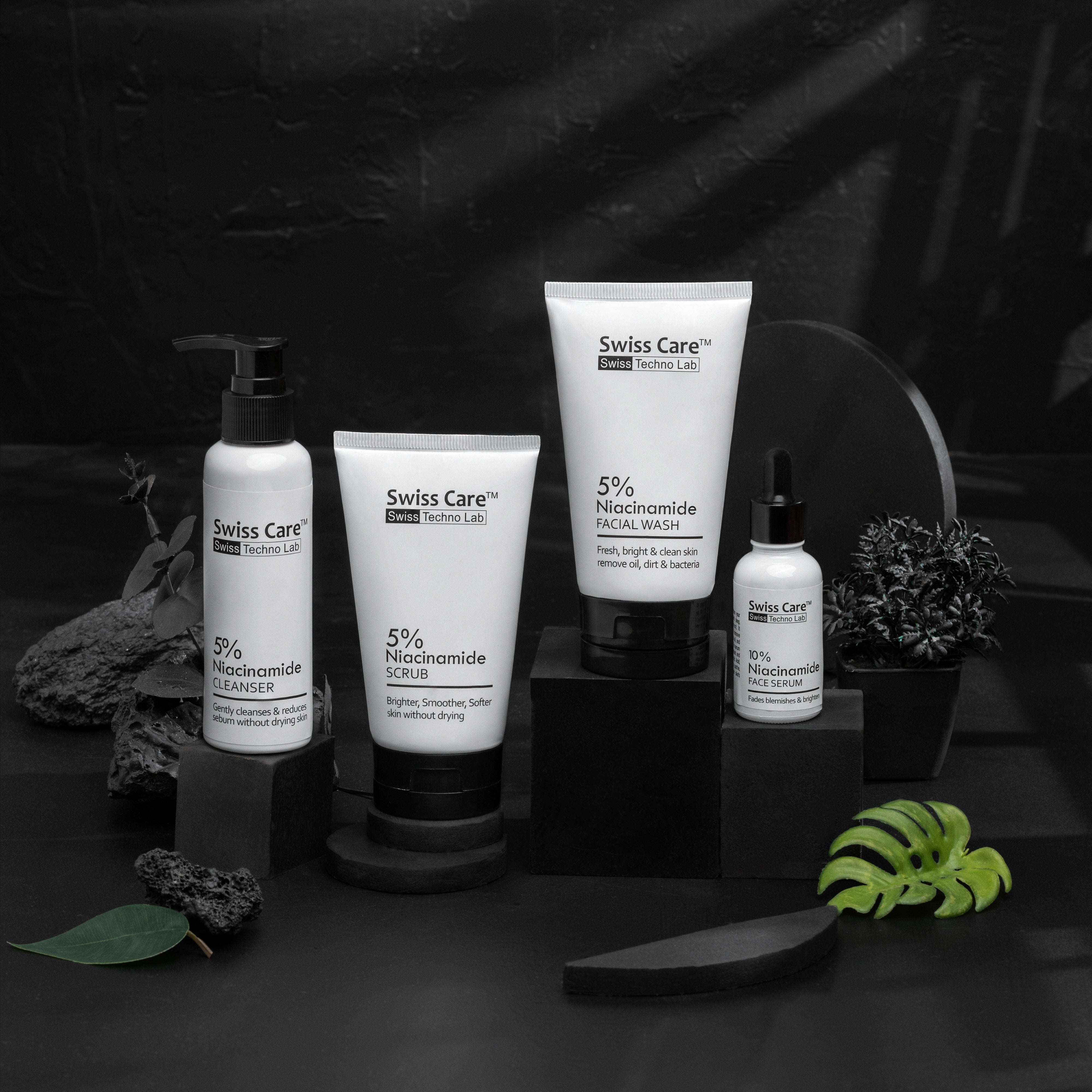 Nourish and transform your skin with the Swiss Care Niacinamide Kit. Powered by potent Niacinamide (Vitamin B3), this advanced skincare kit helps refine pores, fade dark spots, and reduce the appearance of fine lines and wrinkles. It delivers antioxidant protection to strengthen your skin barrier and promote a smooth, radiant, and youthful complexion. Designed with professional-grade ingredients, it offers visible results with consistent use.